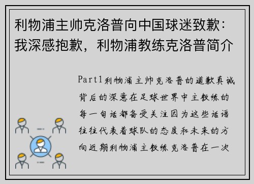 利物浦主帅克洛普的道歉:真诚背后的深意